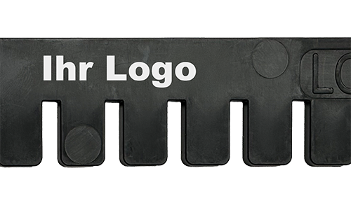 Sie haben die Möglichkeit die Steckleisten individuell mit ihrem Logo zu versehen. Mittels Tampondruck stempeln wir ihr Logo einfarbig auf jede Leiste.