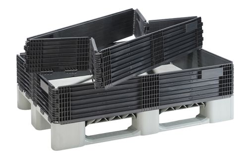 Passend für Euro- und Iso-Paletten. In der Größe 1200 x 800 mm mit 4 Scharnieren lieferbar.